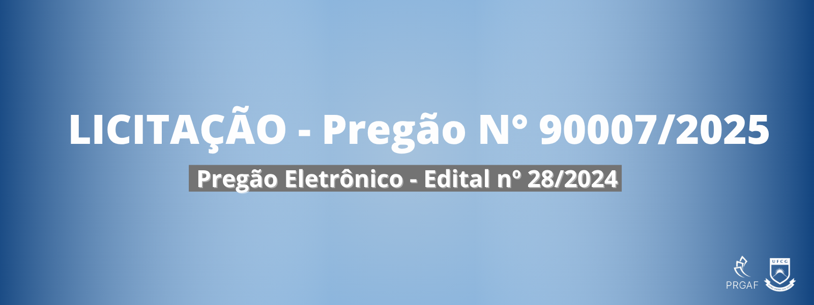 PUBLICIDADE DOS ATOS A Pró-Reitoria de Gestão Administrativo-Financeira torna público a documentação do Pregão Eletrônico Nº90007/2025, o objeto da presente licitação é a...