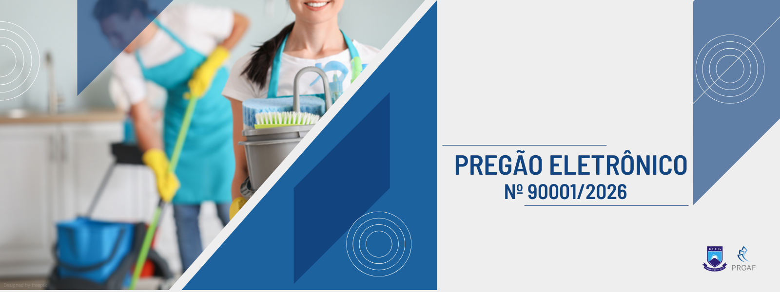 A Pró-Reitoria de Gestão Administrativo-Financeira torna público a documentação do Pregão Eletrônico Nº90001/2026, Contratação de serviços contínuos de limpeza, asseio e conservação com fornecimento de saneantes domissanitários, materiais, ferramentas, utensílios, uniformes, EPIs e equipamentos para o CCJS, a serem executados em regime de dedicação exclusiva de mão de obra, conforme condições, quantidades e exigências estabelecidas neste Edital e seus anexos.